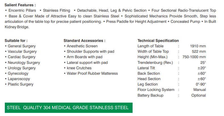 C-Arm Compatible Hydraulic OT Table (MODEL: BJS - 003)